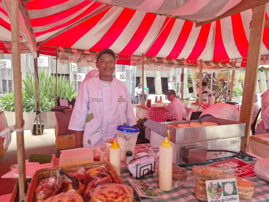 Fernando Ramírez, creador de Villa Arepas —donde elabora arepas a base de queso, yuca, zanahoria, coliflor, entre otras variedades— y participante del programa desde 2019, afirmó que este espacio le ha permitido fortalecer su negocio: “Estar en Mercados Campesinos ha sido una gran bendición; la gente nos va conociendo poco a poco en la ciudad”.