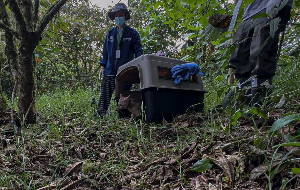 El Área Metropolitana del Valle de Aburrá, confirmó la liberación de una hembra adulta de zorro perro (Cerdocyon thous), atropellada en vías del municipio de Barbosa, tras culminar con éxito su proceso de rehabilitación en el Centro de Atención, Valoración y Rehabilitación de Fauna Silvestre (CAVR). El caso, reportado por la comunidad al Cuerpo de Bomberos Voluntarios de Barbosa, permitió una atención oportuna que incluyó cirugía ortopédica por fractura de húmero derecho, fisioterapia y seguimiento clínico, lo que hizo posible su retorno al hábitat natural, lejos de carreteras y nuevos riesgos.