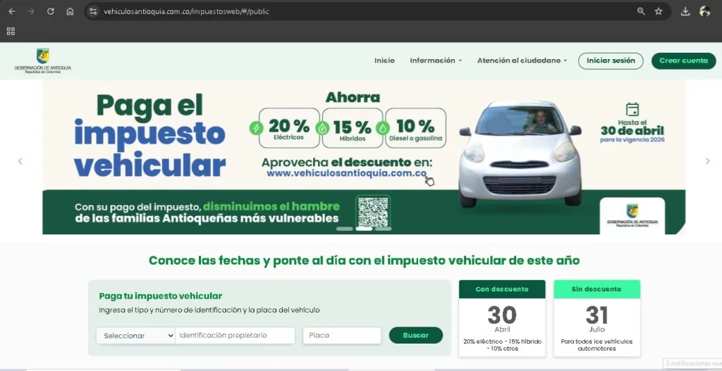 Gobernación alerta: impuesto vehicular solo en vehiculosantioquia.com.co