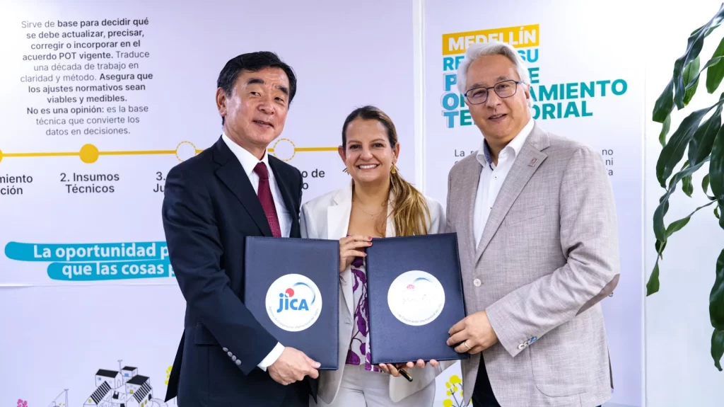 Medellín, formalizó una alianza de cooperación técnica con la Agencia de Cooperación Internacional del Japón (JICA) para promover el Desarrollo Orientado al Transporte (DOT), un modelo urbano que busca concentrar vivienda, comercio, servicios, empleo y espacio público alrededor de estaciones y corredores de transporte público. El acuerdo se firmó mediante el Registro de Discusiones del Proyecto para Promover el Desarrollo Orientado al Transporte y fue suscrito por la Alcaldía de Medellín, la agencia japonesa, el Metro de Medellín, la Alcaldía de Bogotá y el Metro de Bogotá.